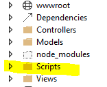 - Add a folder "ts" in "wwwroot/js". This is the Typescript compiler destination folder. Compiling into a sub folder of "wwwroot/js" has the advantage that generated Javascript will be minimized like all other Javascript inside "wwwroot/js" by the the Visual Studio build step. This is nice for Release builds. For our debug session we use the non-minimized "wwwroot/js/ts/scripts.js" in the HTML.